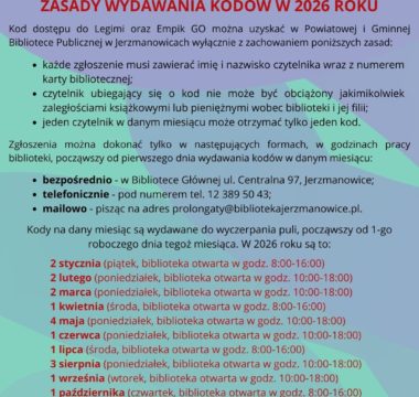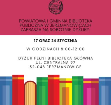 Zapraszamy do naszych bibliotek Zapraszamy do bibliotek w Jerzmanowicach, Przeginii, Racławicach i Sąspowie. Godziny otwarcia... Więcej...