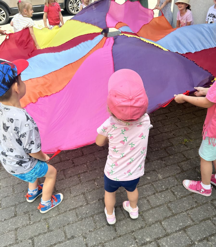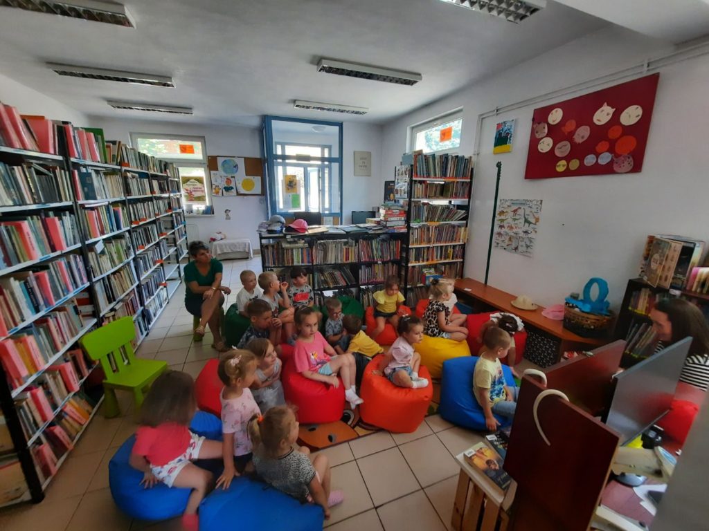 W ostatni wtorek czerwca naszą bibliotekę odwiedziły radosne dzieciaki z Przedszkola w Racławicach. Przedszkolaki, korzystając z pięknej pogody, dzielnie przybyły na zajęcia. Książka, którą wybraliśmy na dzisiejsze spotkanie, nosi tytuł Czego nie wiecie o alfabecie, a jej autorką jest Ola Cieślak. O literkach można mówić wiele, ale dzięki książce mali słuchacze poznali, jakie dźwięki mogą wydawać poszczególne literki. I tak, trochę rozluźniliśmy gardła wydając przeróżne odgłosy pasujące do literek:) Po tej zabawie głosem aż się prosiła zabawa ruchowa. Korzystając z ładnej pogody, zabraliśmy na zewnątrz naszą kolorową chustę i pobawiliśmy się w “stojącego chowanego”, ubiliśmy śmietanę na tort, a także trochę pokombinowaliśmy, jak tu kołysząc chustą trafić małym autem we wskazany punkt. Serdecznie dziękujemy radosnej grupie i zapraszamy do racławickiej biblioteki po wakacjach!