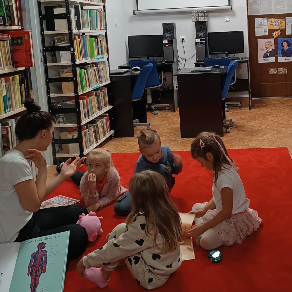 Tematem naszego wrześniowej pogaduchy były… Organy wewnętrzne! A dokładniej serce ❤️ i mózg 🧠. Książek nam zdecydowanie nie zabrakło, ale centrum opowieści stanowiła pozycja Budowa twojego ciała. Co jest czym i jak działa Róży Hajkuś, pediatry i popularyzatorki wiedzy. Dziękujemy za owocne spotkanie🤯💪