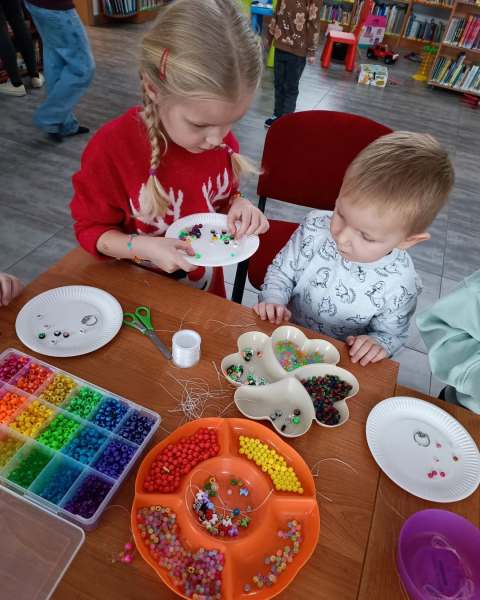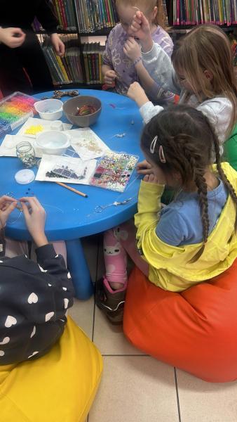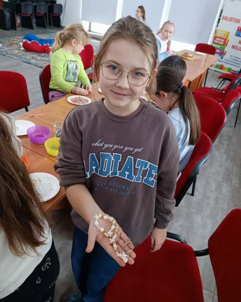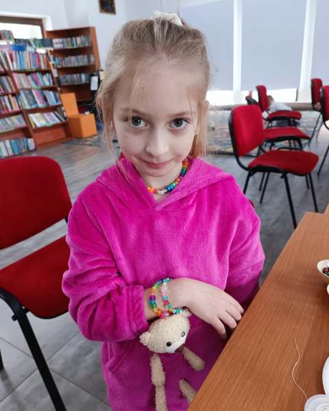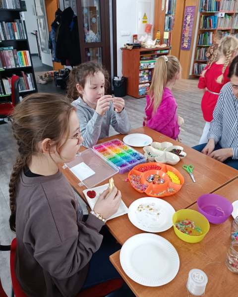 Koralikowe szaleństwo również dotarło do Racławic – biżuteria powstawała w ilościach hurtowych i w zawrotnym tempie. Bibliotekę opuszczały prawdziwe damy (i dżentelmeni) w pełnym blasku ✨