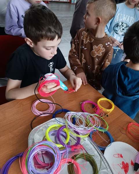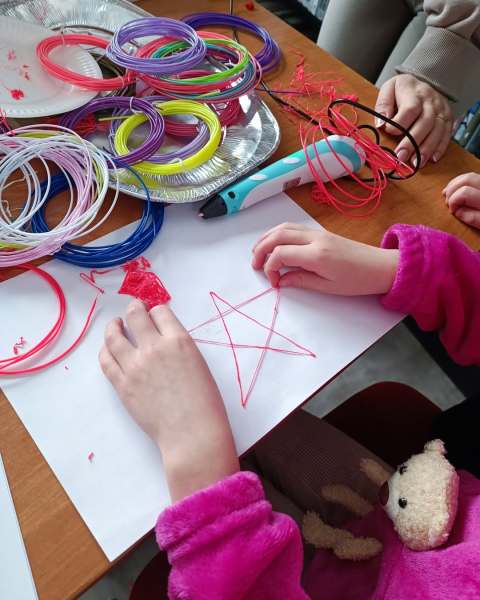 W kolejnych dniach zrobiło się bardzo twórczo. Powstały piękne koralikowe bransoletki, naszyjniki i breloczki, a długopis 3D okazał się narzędziem, które nasi młodzi uczestnicy opanowali szybciej niż prowadzący (i to jest fakt, z którym musieliśmy się pogodzić 😅).