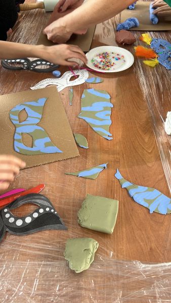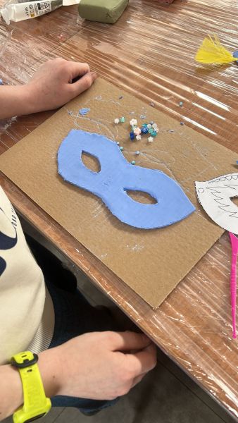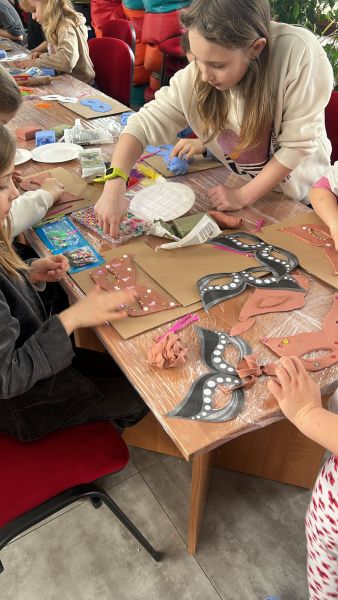 Nie zabrakło też warsztatów plastycznych i pracy z gliną – wspólnie stworzyliśmy karnawałowe maski, które po wyschnięciu zostały ozdobione koralikami. Na finał czekała zasłużona, słodka nagroda – gofry!