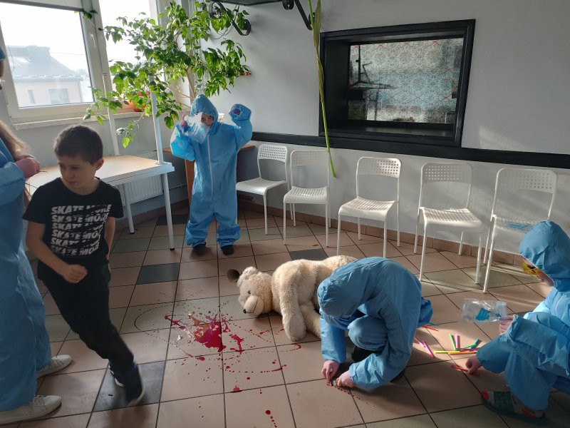 W Przegini nie brakowało wiedzy. Podczas warsztatów detektywistycznych młodzi technicy kryminalistyki zbierali ślady, analizowali materiał dowodowy i próbowali ustalić, czy zejście Psa-Misia było przypadkowe😁. Przy okazji rozmawialiśmy o różnicy między “evidence” a “proof” i o tym, jak często w życiu przydaje się umiejętność udowadniania swoich racji.