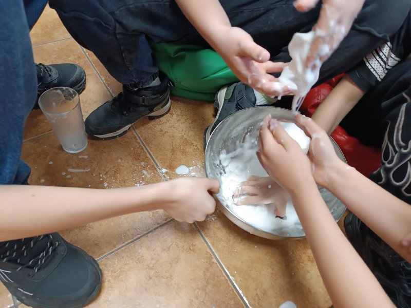 Było też bardzo naukowo. Eksperymenty wywołały sporo śmiechu i… jeszcze więcej bałaganu. Ciecz nienewtonowska okazała się absolutnym hitem, a entropia – zgodnie z prawami fizyki – mogła jedynie rosnąć 😉