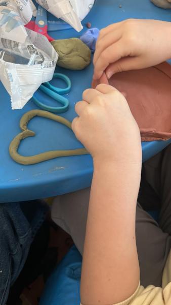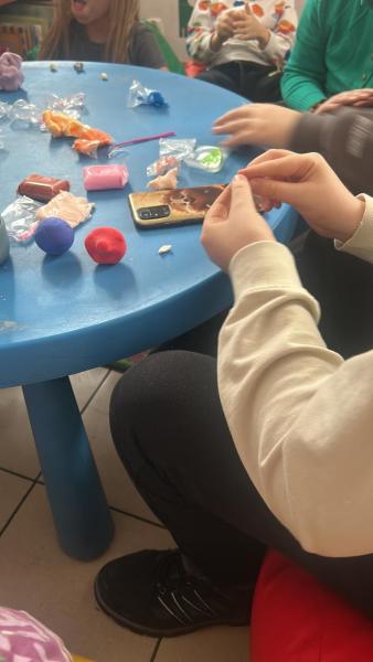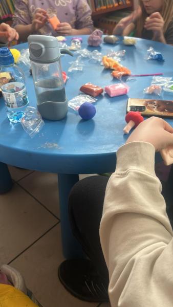 Było też kolorowo i sensorycznie za sprawą piankoliny. Ugniatanie, rolowanie, mieszanie barw – czyli wszystko to, co dzieci (i nie tylko dzieci) lubią najbardziej.
