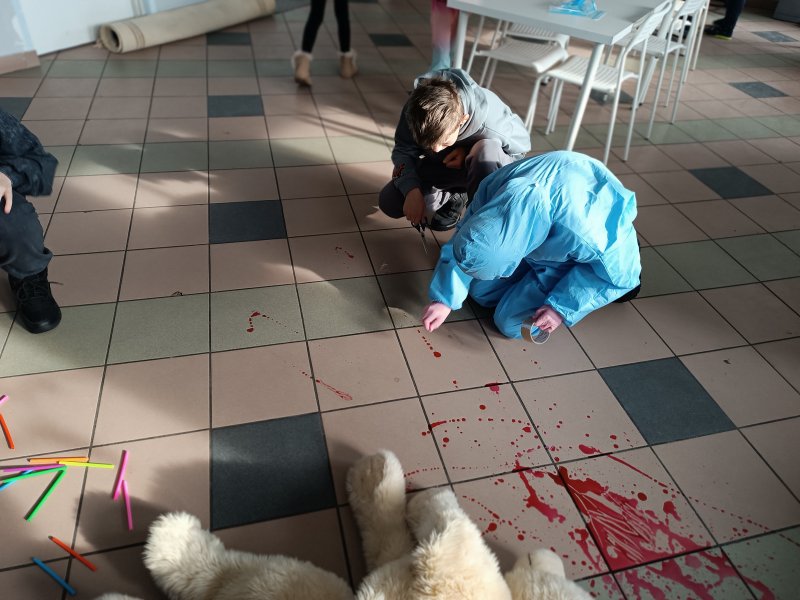 W Przegini nie brakowało wiedzy. Podczas warsztatów detektywistycznych młodzi technicy kryminalistyki zbierali ślady, analizowali materiał dowodowy i próbowali ustalić, czy zejście Psa-Misia było przypadkowe😁. Przy okazji rozmawialiśmy o różnicy między “evidence” a “proof” i o tym, jak często w życiu przydaje się umiejętność udowadniania swoich racji.
