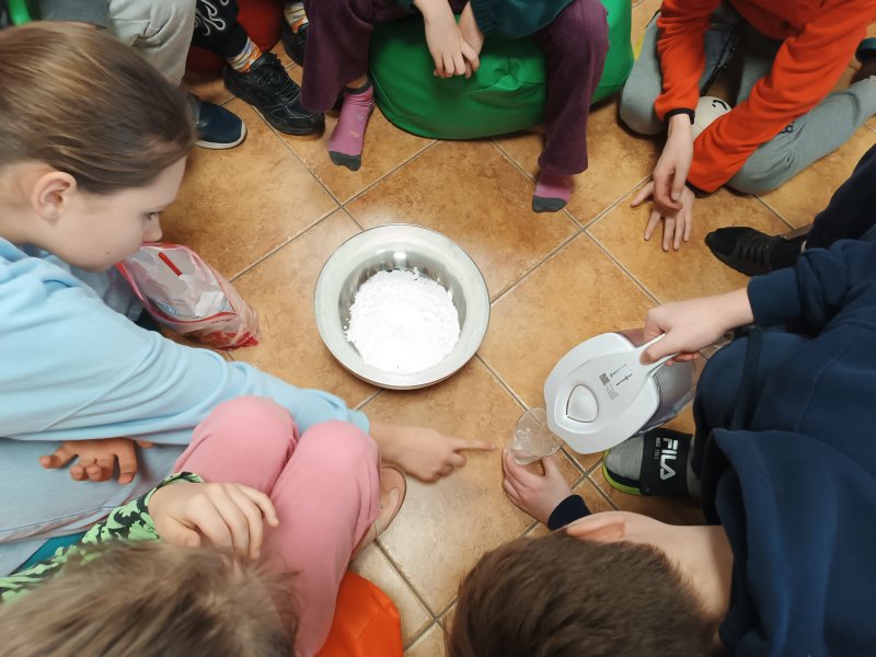 Było też bardzo naukowo. Eksperymenty wywołały sporo śmiechu i… jeszcze więcej bałaganu. Ciecz nienewtonowska okazała się absolutnym hitem, a entropia – zgodnie z prawami fizyki – mogła jedynie rosnąć 😉
