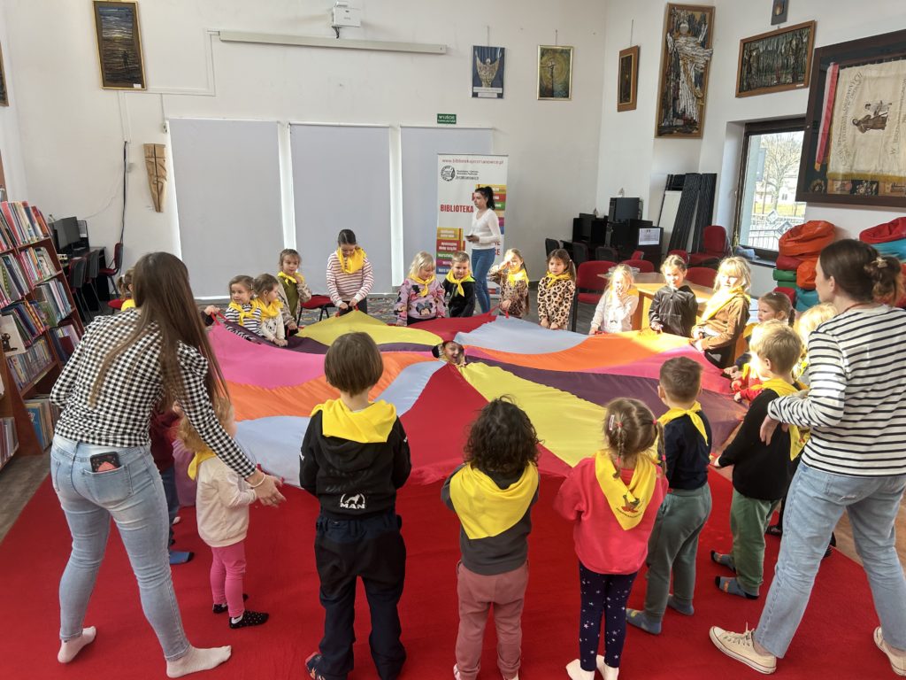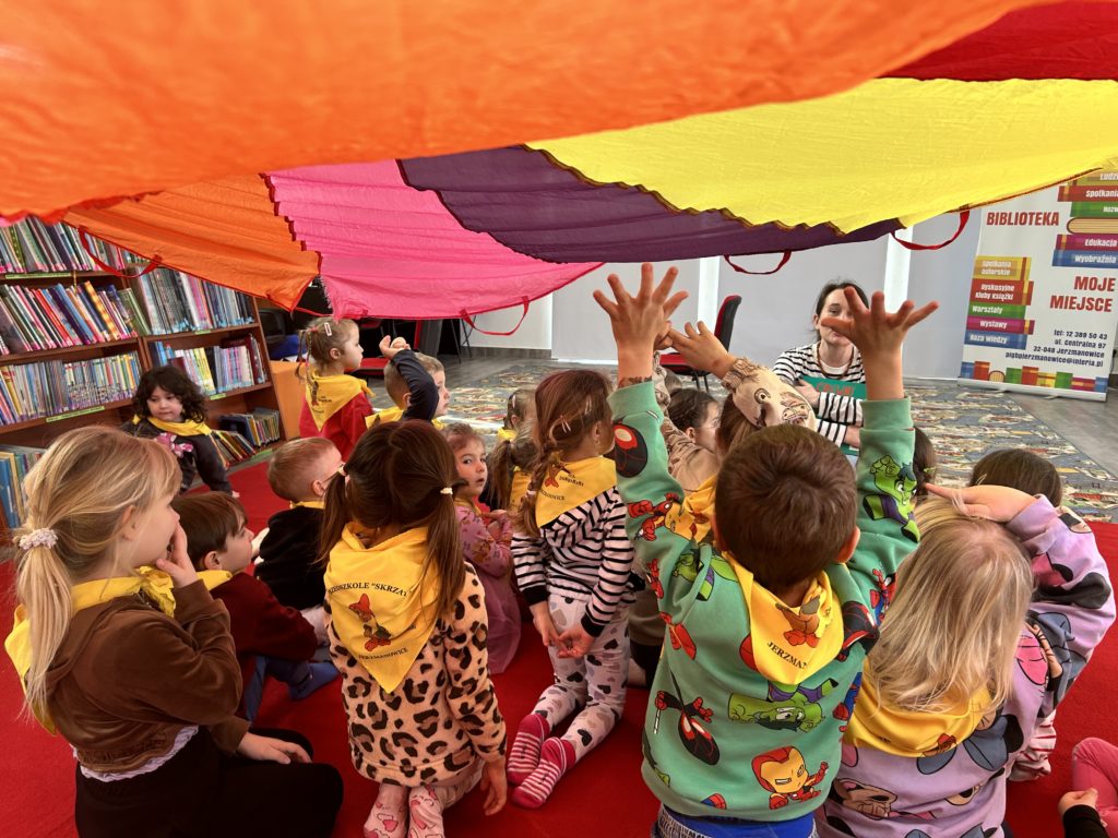 W dniu 27.02 Bibliotekę w Jerzmanowicach odwiedziły wesołe Przedszkolaki. Spotkanie rozpoczęliśmy od krótkiego przywitania. Potem przyszedł czas na lekturę. „Gniewny Antoś”, który został wybrany na dzisiejsze spotkanie został przyjęty z ogromną ciekawością. Mali słuchacze po wysłuchaniu historii bardzo chętnie brali udział w dyskusji na temat przeczytanej treści. Potem zorganizowaliśmy kilka zabaw z chustą animacyjną i ta część spotkania okazała się również bardzo udana. Zabawą wieńczącą nasze spotkanie był lubiany przez wszystkich maluchów tor przeszkód. Dziękujemy za to spotkanie i zapraszamy.